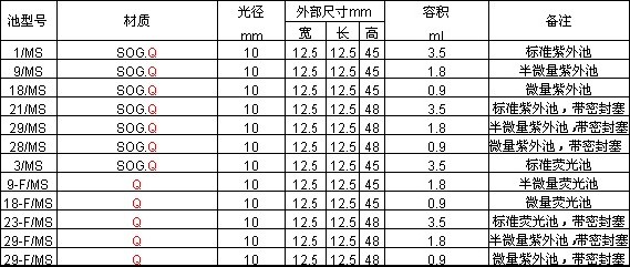 - 光谱比色池系列