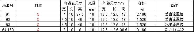 半微量和亚微量恒温比色池,Type 61,62,63,64
