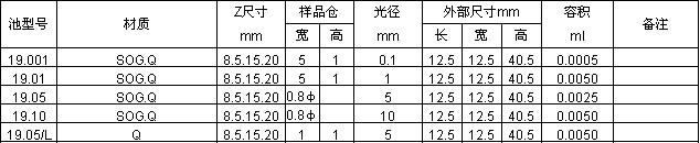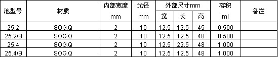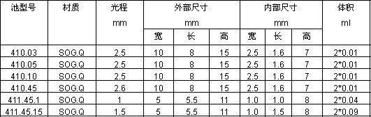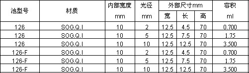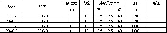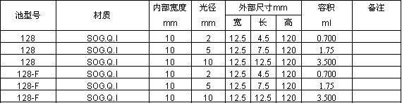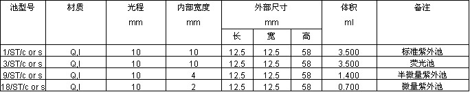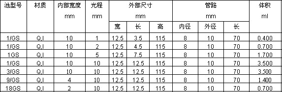 带有石英-耐热玻璃分级密封柱方形池,Type 1,3,9,18