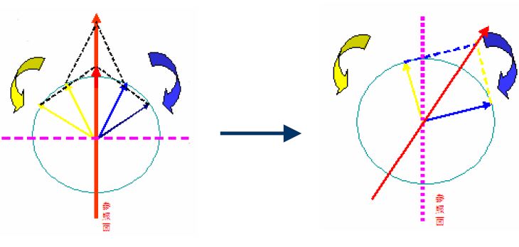 振幅相等、位相差1/4波长,两束线偏振光合成圆偏振光