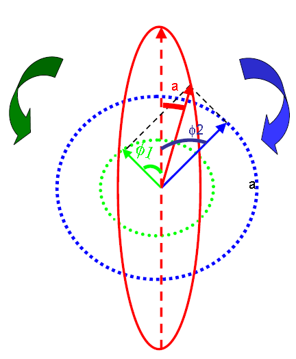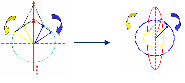 振幅不相等、角频率相等,左右圆偏振光合成椭圆偏振光