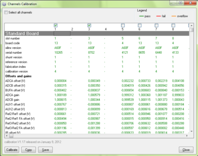 4. 校准结束后,如果校准数据中有红色数据,说明校准失败,会弹出校准失败的对话框,这说明通道板上某些元器件可能有损坏,需要报修。此时需要点击校准对话框下方的save,并将校准数据发给我们。