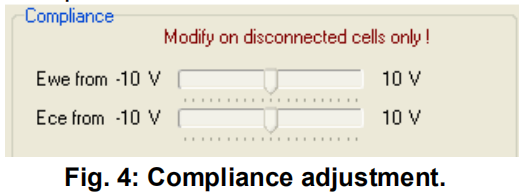 请注意仪器的最高控制电位: 如果主通道连接至控制电位量程为[-10:+10]V的booster,如2,5,10或20A的booster,这时可以在“Advanced Settings”中调节控制电位量程(如Fig.4)。整个模组的控制电位量程可调节至[0;20]V。 如果主通道连接至其他控制电位量程的booster,如80A/[-3;+3]V或100A/[0.6;5]Vbooster,或LB-2000[0;50]V,这是整个模组的最大可支持电压取决于booster自身的电位量程。所以,如果主通道连接至LB-2000,那么控制电位量程即为[0;50]V。如果连接至80A booster,控制电位量程则为[-3;3]V。 |