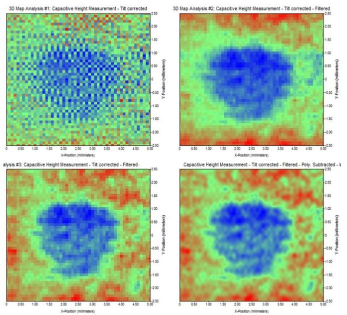 本文演示的是一个不是特别水平的SKP样品,设备没有设置成提取有效数据的状态,实验结果很糟糕。处理后的数据显示在扫描中心附近有一个小压痕。为了进行比较,还做了进一步的检查。