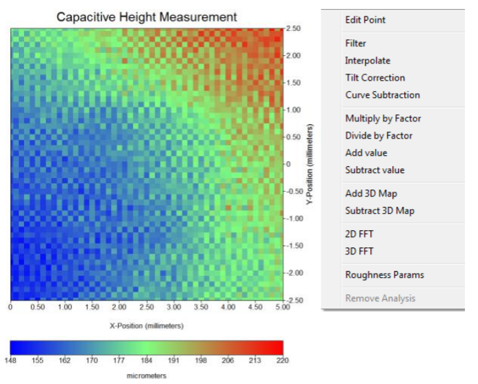 图1中可见,没有任何特别的点。然而,应用分析功能“Tilt Correction”、“Filter”、“Curve Subtraction”、“Interpolate”后,实验结果马上变得很明显,如图2所示。