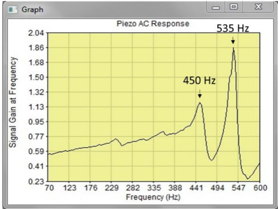 第一步,描述压电的交流响应,当连接电缆后,探针安装在固定器上,浸入溶液。交流描述的目的是找到压电+探针固定器+探针+电缆集合的谐振频率。图2是典型的交流响应。