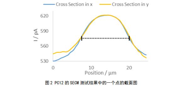 在所有的SECM测试中,氧化还原介质都非常重要。所以探针测试微米级范围时,选择恰当的氧化还原介质非常必要。由于采用微米尺寸的电极测试低电流特征,电极污染对实验结果的影响非常明显,这也是选择氧化还原介质需要考虑的重要因素之一。在本文实验中,只采用了K3[Fe(CN6)],而没有采用含K4[Fe(CN6)]的混合物,因为这可以降低电极的污染。探针的污染会使测试电流降低。降低探针的污染,就可以进行更大范围的测试。选择氧化还原介质时,需要考虑的另一个因素是其扩散系数D。探针测试的电流与扩散系数有直接关系,低扩散系数的介质会降低测试电流。所以用户在选择氧化还原介质之前要对标准氧化还原介质或者文献里使用的氧化还原介质进行测试,这将改进用户的实验测试结果。Scanning Electrochemical Microscopy一书的第一章中列出了可选的介质[3]。