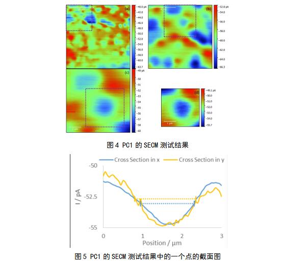 用户可以采用SECM150结合微米尺寸探针测试微米尺寸的特性。本文测试了两种不同的聚碳酸酯薄膜。通过先测试较大区域,然后可以选择单个区域集中测试,也可以提高分辨率。最后介绍了几种实验操作的技巧。