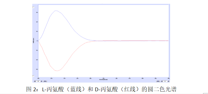 首先测量纯对映体的圆二色光谱,以检查样品制备的质量和测量的圆二色谱信号的完整性。L-丙氨酸和D-丙氨酸的光谱如图2所示。
