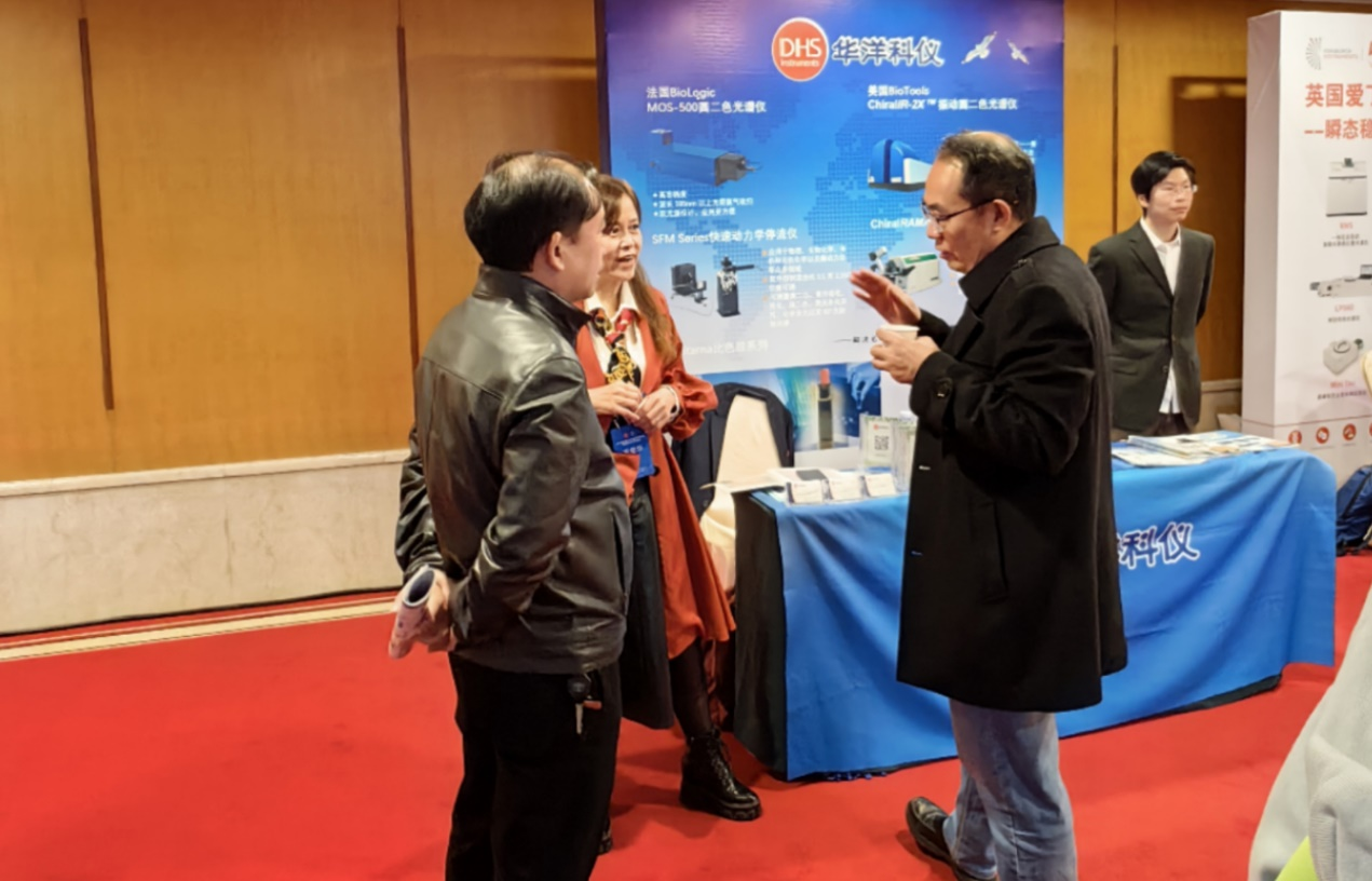 手性科学研究是华洋科仪三十年来深耕的领域,拥有国际前沿的圆二色光谱仪、快速动力学停流圆二色光谱仪、振动圆二色光谱仪,手性拉曼光谱仪,手性结构量化计算等硬件软件,以及专家级服务团队。会场外的展位区华洋科仪展位吸引了众多与会专家学者们驻足交流。
