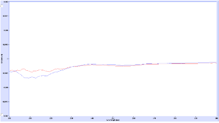 图5:纯L-丙氨酸(蓝线)和未知混合物C(红线)的圆二色光谱